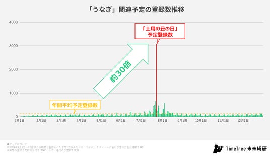 【未来総研トレンドラボ】土用の丑の日には年間平均の約30倍うなぎの予定が集中!