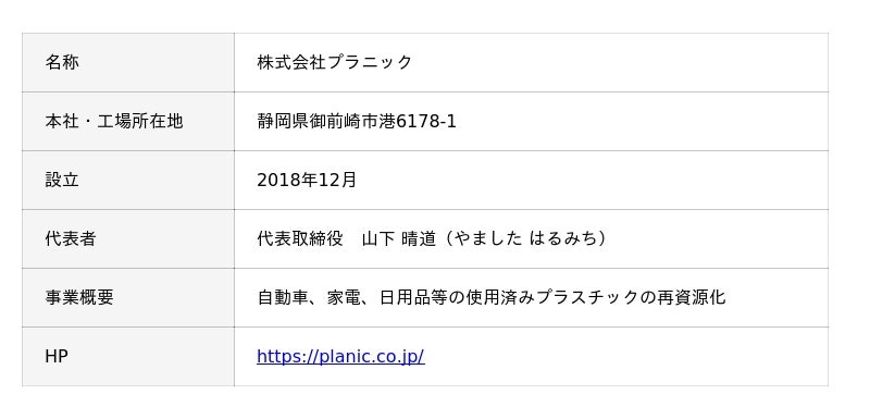 プラニックは、豊田通商と小島産業株式会社(小島プレス工業株式会社のグループ会社)が出資する国内最大級※1の再生プラスチック製造事業会社です。プラニックで使用する再生プラスチック製造の原料は、豊田通商のグループ会社で自動車リサイクル事業を手掛ける豊田メタル株式会社※2をはじめ、日本全国のASR再資源化施設や家電リサイクルプラントなどから回収しています。
