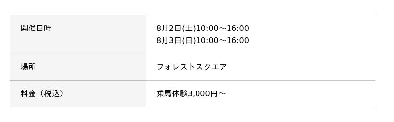馬が人間と心を通わせように、クルマが人と心を通わす場所こそ、もっといいクルマづくりの原点である。フォレストスクエアでは今回もフォレストホースパーク(乗馬体験)を開催いたします。
