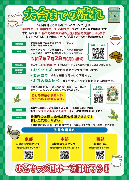 小中学生対象のお茶大会「Cha-1グランプリ」の参加者募集