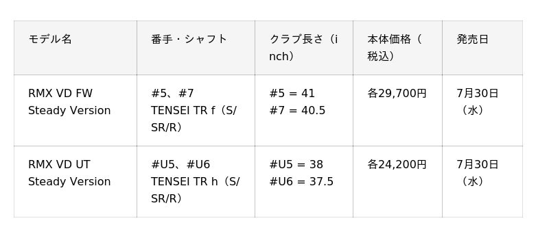 「RMX VD」のフェアウェイウッドとユーティリティに高いミート率の新モデルが登場 ゴルフクラブ『RMX VD FW Steady Version』『RMX VD UT Steady Version』