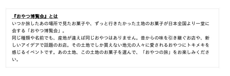<『おやつ博覧会』開催概要>
