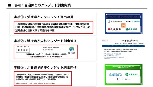 〇Green Carbonの自治体とのクレジット創出実績(一部抜粋)