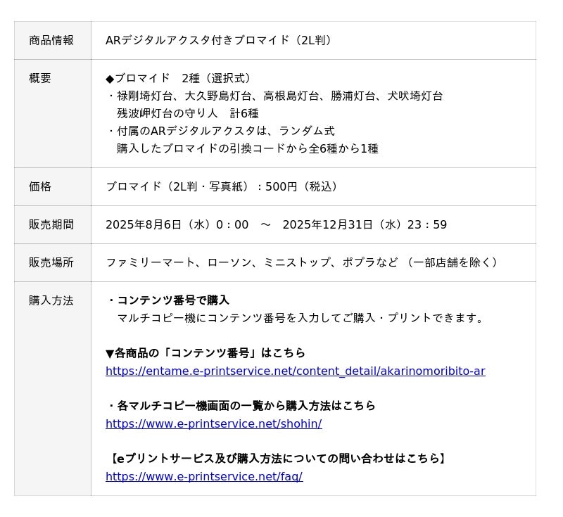 株式会社メディアドゥが運営するNFTマーケットプレイス「FanTop」と株式会社ワールドエッグス(本社:東京都港区、代表取締役 CEO 波房 克典、以下「ワールドエッグス」)は、灯台を擬人化した『燈の守り人』の「ARデジタルアクスタ付きブロマイド」を含むプリントグッズを2025年8月6日(水)より販売する。