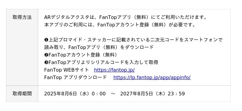 ◆ ARデジタルアクリルスタンドの取得方法・期限について