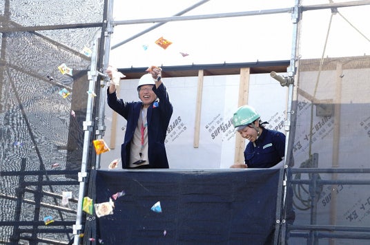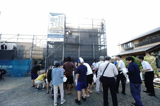 未来型住宅の上棟を、地域の伝統で祝う 黒石モデルハウス上棟記念「もちなげ」開催 GX志向とDX思想をつなぐ一日