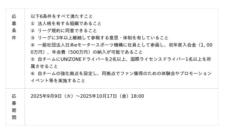 一般社団法人日本eモータースポーツ機構国内で唯一JAFの公認を受けているeモータースポーツリーグ「UNIZONE」が、2026年リーグ参戦チームの募集を開始!
