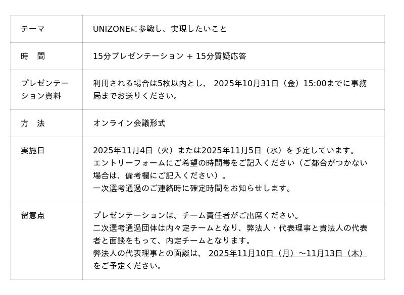 ◆一次選考:書類審査一次選考通過者には2025年10月23日(木)にご連絡いたします。