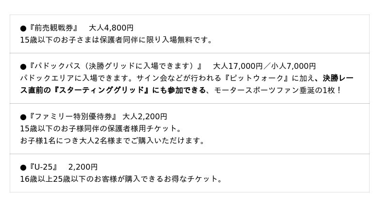 富士スピードウェイ株式会社前売観戦券8月21日(木)午前10時から順次発売!