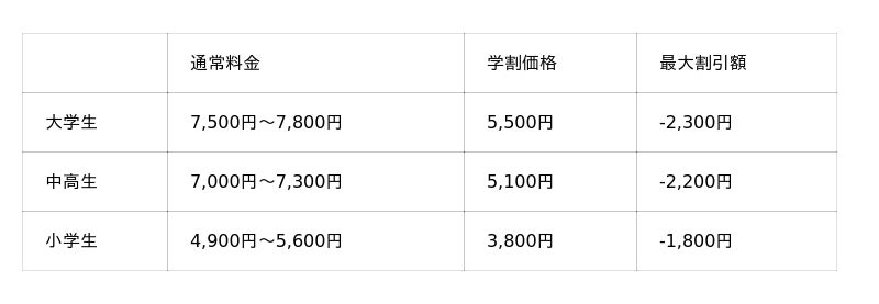 中高生5,500円~7,300円