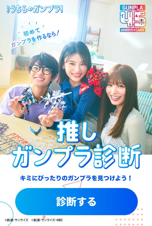 9月5日(金)からのCM第3弾の放送に合わせ性格診断コンテンツ「推しガンプラ診断」を開催します。専用WEBサイト上で簡単なアンケートに答えていただくと、性格診断に合ったガンプラを提案してくれるコンテンツです。診断結果を指定のSNSにハッシュタグ投稿していただくことで、出口さん・横田さん・黒川さんのサイン入りポストカードを含む複数景品が当たります!詳細はバンダイホビーサイトの更新をお待ちください。