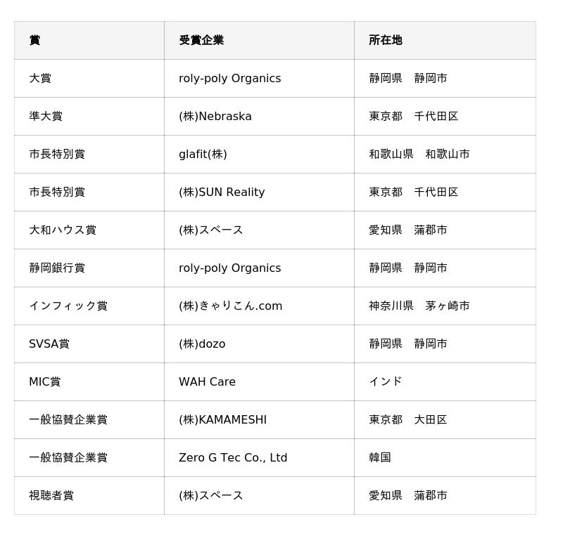 協賛企業として、大和ハウス工業、静岡ベンチャースタートアップ協会、静岡銀行、インフィック株式会社ほか、地域有力企業26社が参加。スタートアップの応募総数は168社(うち海外73社)にのぼり、国内最大規模の地域オープンイノベーションイベントとなりました。