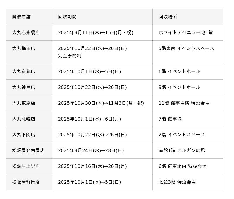 開催店舗・回収期間