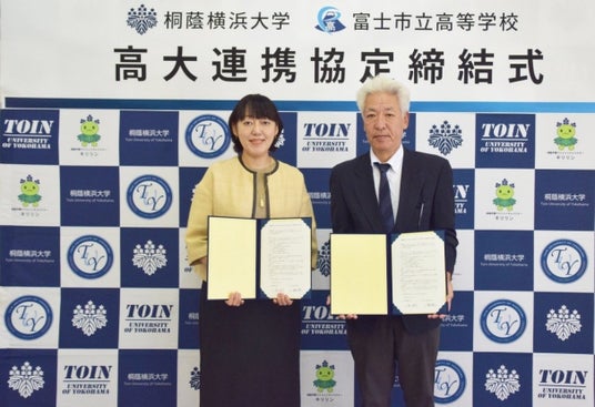 桐蔭学園桐蔭横浜大学(神奈川県横浜市青葉区、学長:森 朋子)、富士市立高等学校(静岡県富士市、校長:櫻井 祥行)は、相互に連携し交流を深めることにより、両校の教育内容の充実と学生及び生徒の学びと成長を図ることを目的として高大連携協定締結式を行いました。