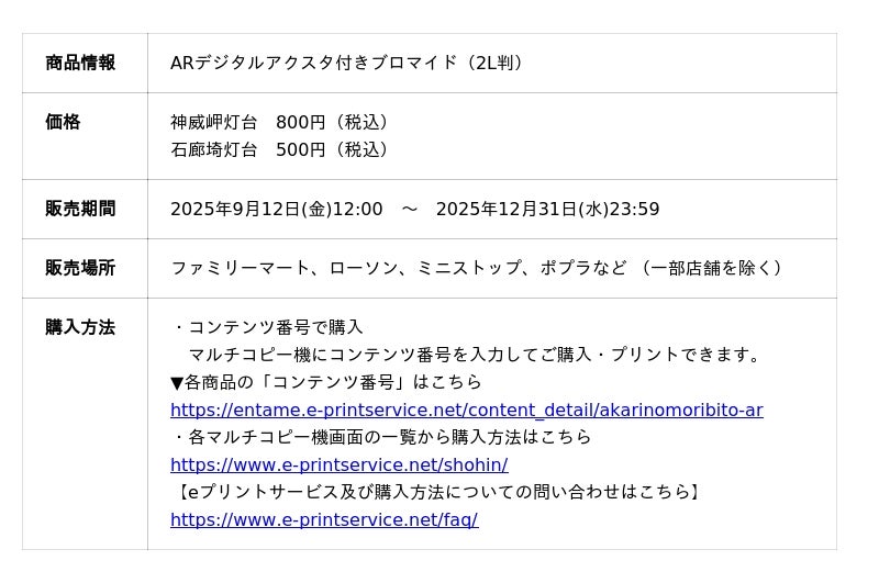 今回デジタルアクスタに仲間入りする守り人は、神威岬灯台(北海道積丹町)と石廊埼灯台(静岡県南伊豆町)の2人。コンビニで引換コード付きのブロマイドを購入することで、ARデジタルアクスタが1体ダウンロードできます。さらに、神威岬灯台のARアクスタは、タップするとCV:中井和哉さんのボイスが流れる特別仕様!ぜひこの機会をお見逃しなく。