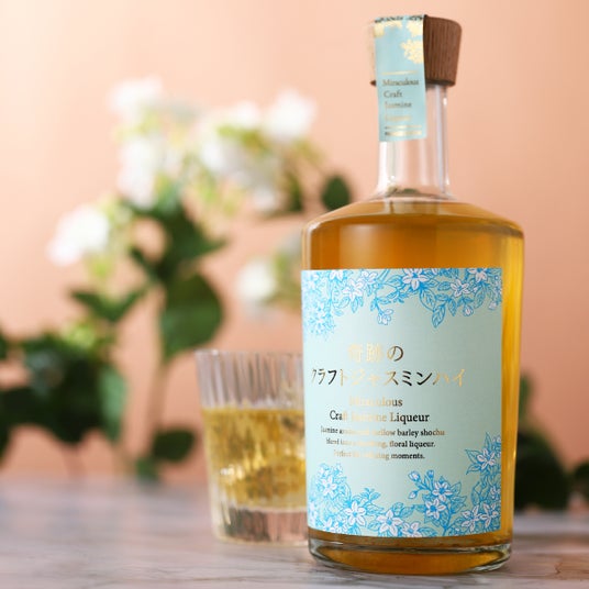 そのうえ、ジャスミンティーの華やかな香りを最後の一滴まで堪能していただくために、ほんのりと甘みを追加し、飲み心地の良さも追求しました。ジャスミンティーの香りと本格麦焼酎ならではの奥深さの両方を感じられるバランスの良い味わいです。