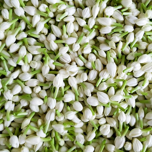 2.希少な静岡県産ジャスミンの花で香り付け緑茶の茶葉に香り付けするジャスミンの花も、希少な静岡県牧之原産のものを使用しました。ジャスミンの花は、つぼみが開くその瞬間に最も豊かな香りを放ちます。つぼみのまま摘み取った花を使い、開花の瞬間に立ちのぼる気品あふれる香りを余すことなく茶葉にまとわせました。