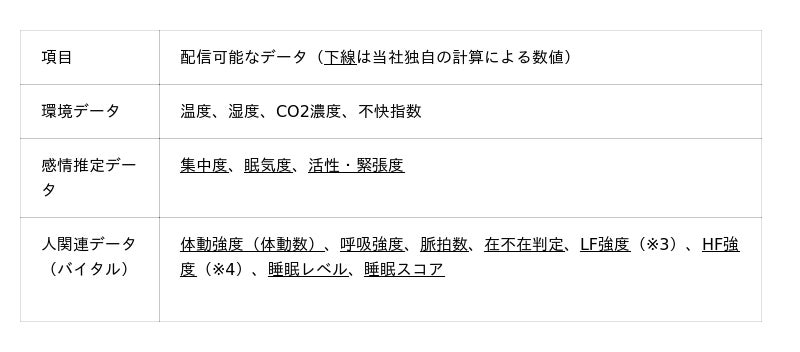 本サービス(※3)は、「エモコ分析クラウド」で分析した「感情推定データ」や環境データなどを、クラウドAPI経由で最短1分毎に配信します。これにより、集中度や眠気度などの人の状態に応じた新たなサービスの開発や既存製品・サービスの価値向上が可能となります。