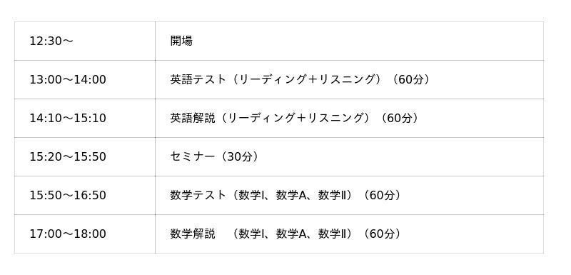 受験方法は、「大学受験ナビオ高田馬場校で受験+解説授業(対面)」「自宅でのオンライン受験+解説(映像)」との2つから選べます。