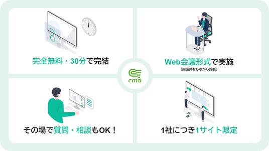 株式会社シーエムエー企業のWebサイトを無料で診断し、課題や改善のヒントをご提案します。