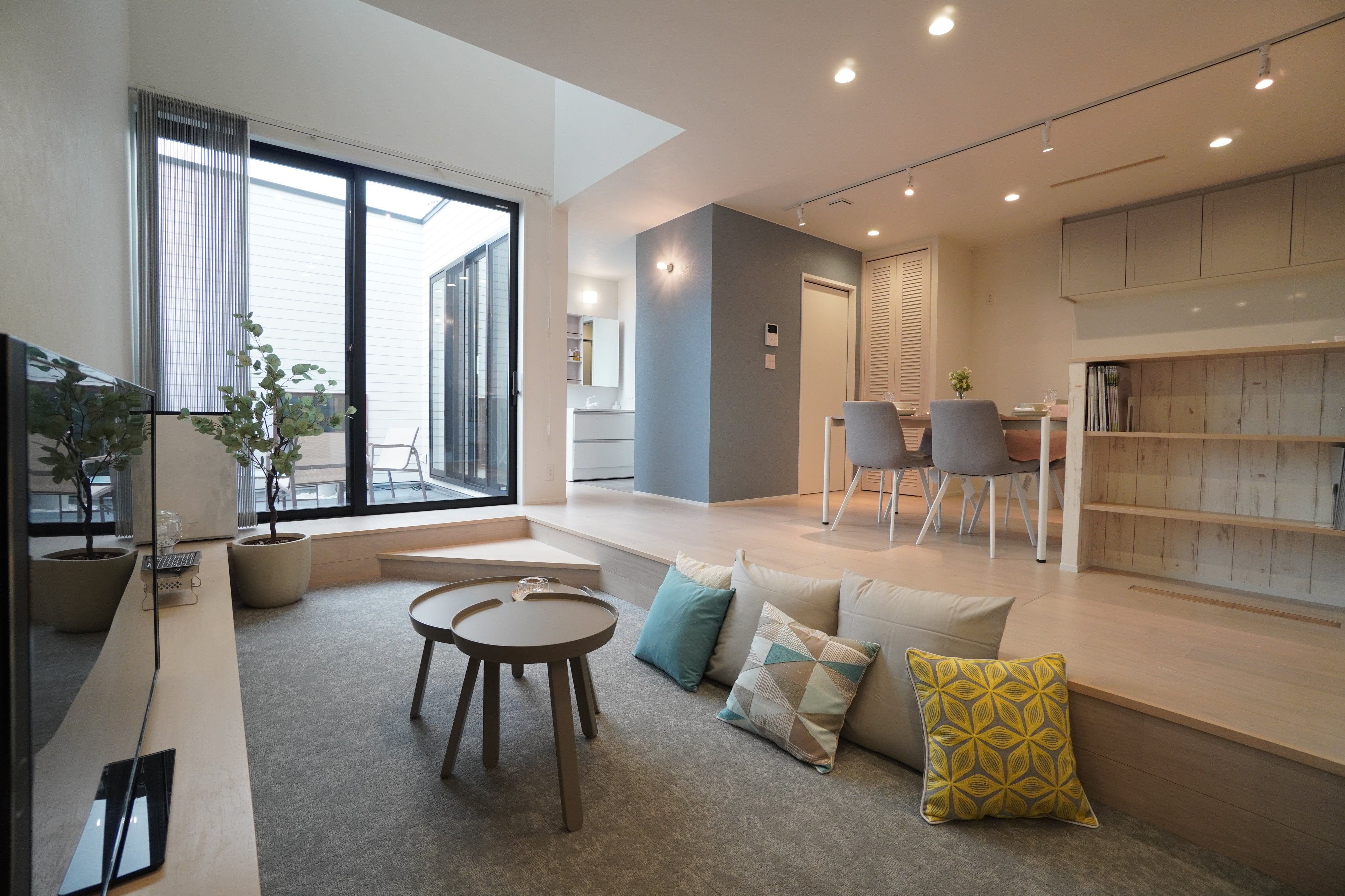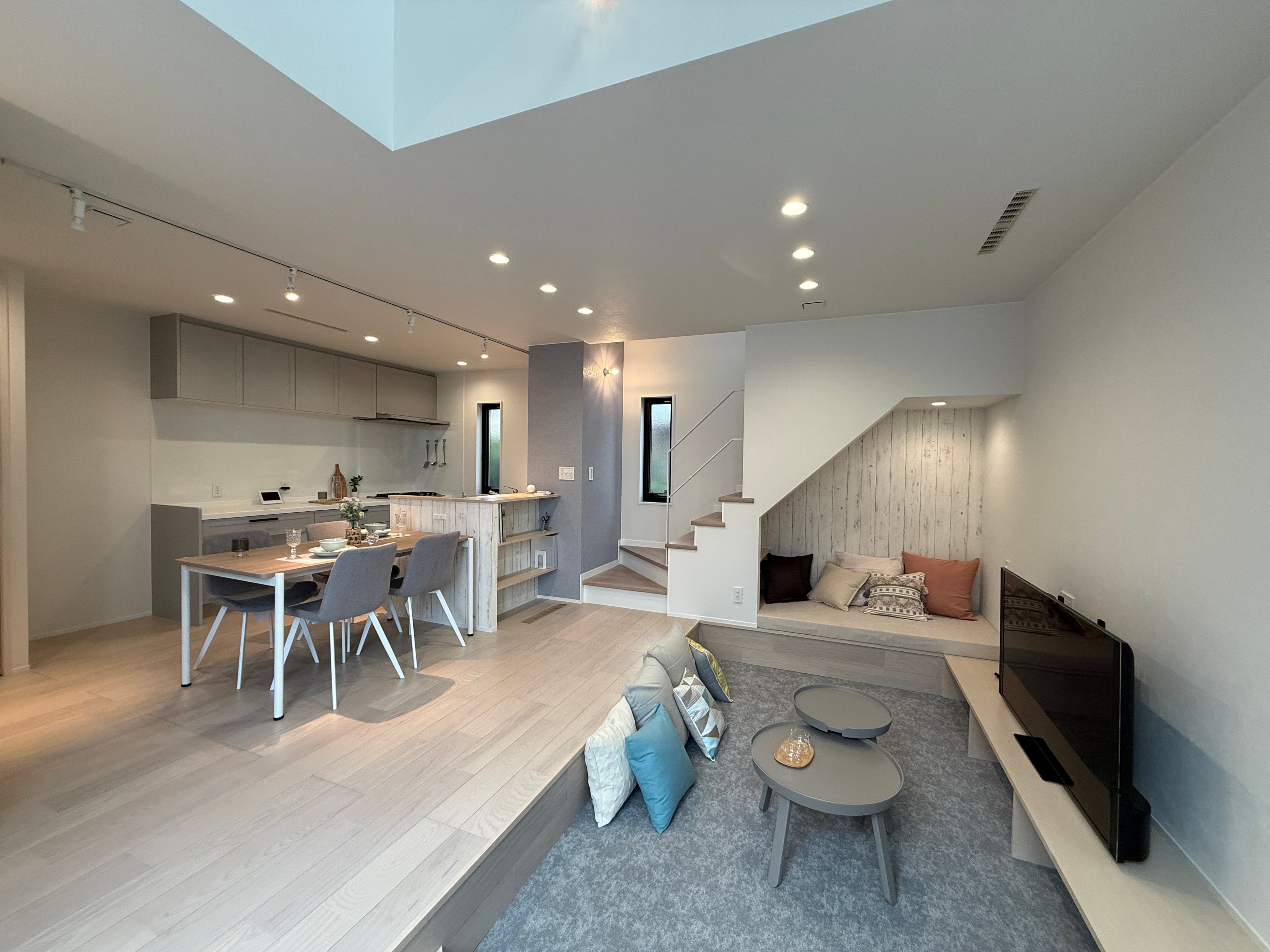 子育て世代を想定し、1階で生活が完結する間取りや、II型キッチン※2・乾太くん・全館空調などの最新設備を備え、家事負担を軽減しながら快適な暮らしを提案します。