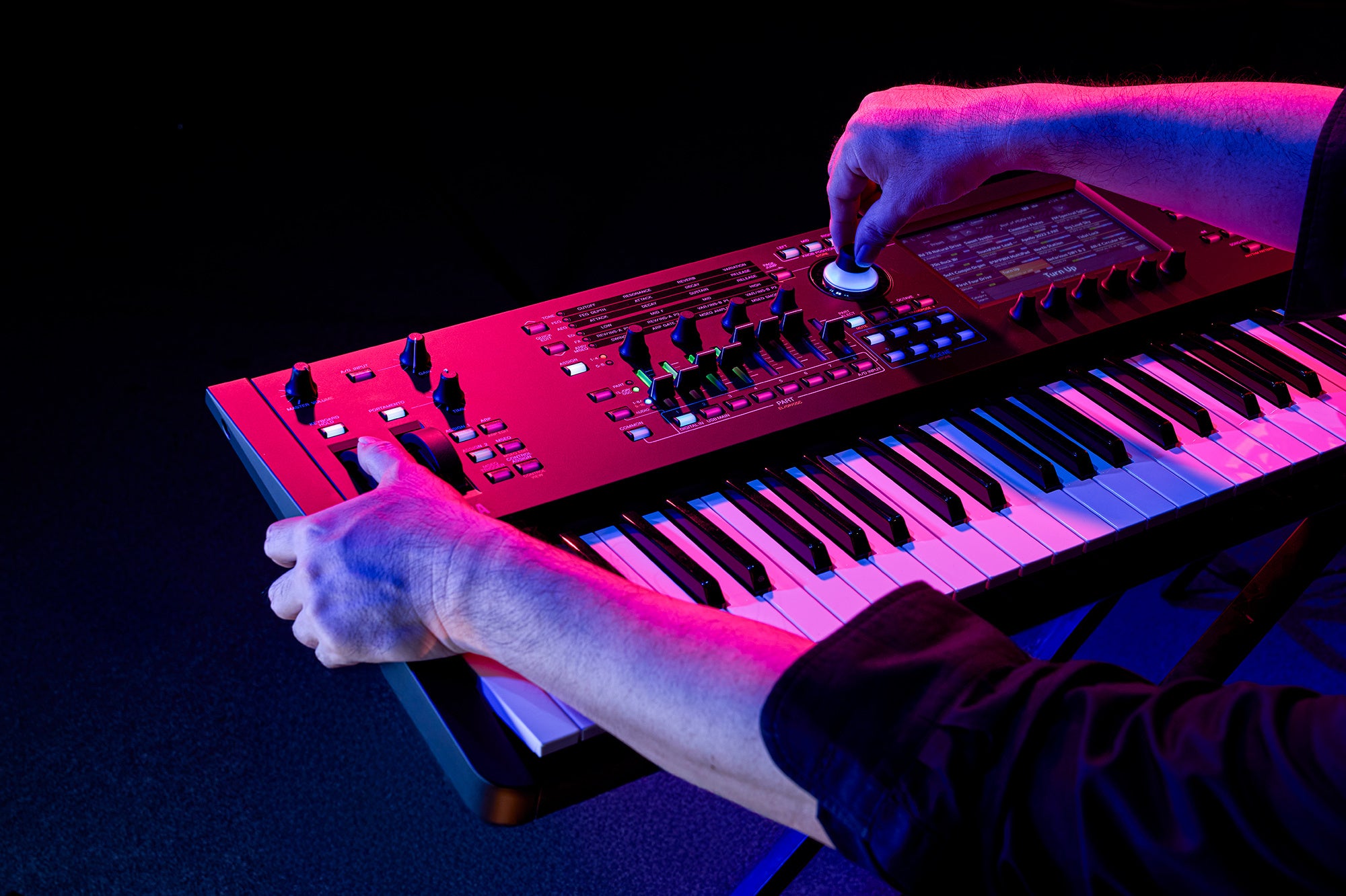 このたび発売する『MODX Mシリーズ』は、フラッグシップモデル「MONTAGE Mシリーズ」の豊かな表現力と高い操作性を継承しつつ、アクティブに活躍するキーボーディストのニーズに応えるコンパクト&ライトウェイトを実現したシンセサイザーです。