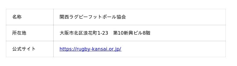 関西ラグビーフットボール協会は、関西地方におけるラグビーの普及・発展を目的として、大学、社会人、高校、クラブなど幅広いカテゴリーで大会運営、育成事業、指導者・審判の養成、普及活動を展開されております。