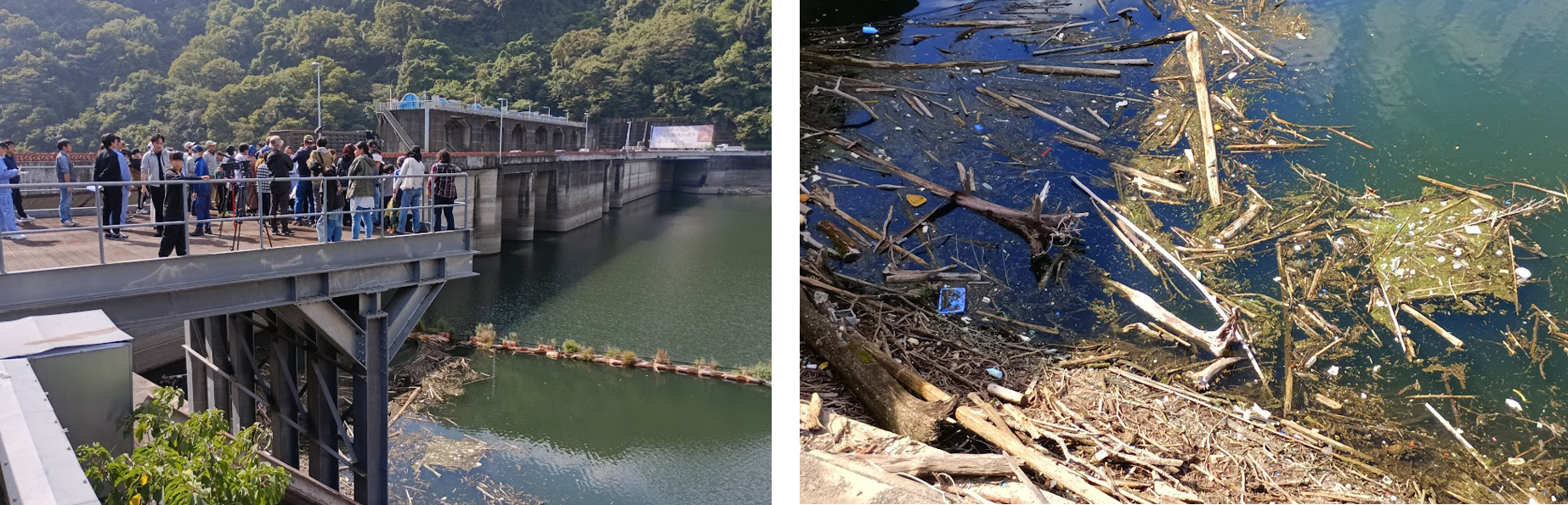 次に訪れたのは神奈川県相模原市の城山ダム。ダム湖は「津久井湖」の名で知られています。ダム管理事務所のの担当者から、台風などの際はダムに大量のごみが溜まり、クレーン車で撤去していることなどの説明がありました。今年は台風が少なかったので、ごみは少ない方ということです。