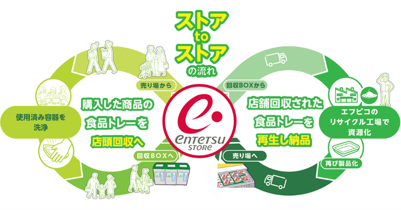 株式会社エフピコ(本社:東京都新宿区、代表取締役会長:佐藤 守正、以下「エフピコ」)と株式会社遠鉄ストア(本社:静岡県浜松市、代表取締役社長:宮田 洋、以下「遠鉄ストア」)は、地球環境及び資源の保護に向けた取り組みとして、エコストア協働宣言したことをお知らせいたします。遠鉄ストアの全35店舗において、お店を発着点とした「ストアtoストア」の水平リサイクル※1を協働で推進してまいります。