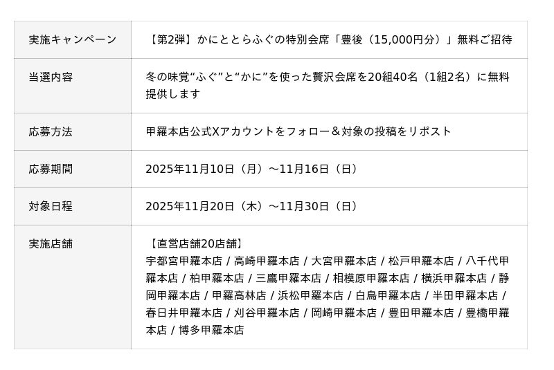 株式会社甲羅第1弾は“初がに”をふんだんに使った10万円相当の《初がに豪華会席》に無料でご招待!