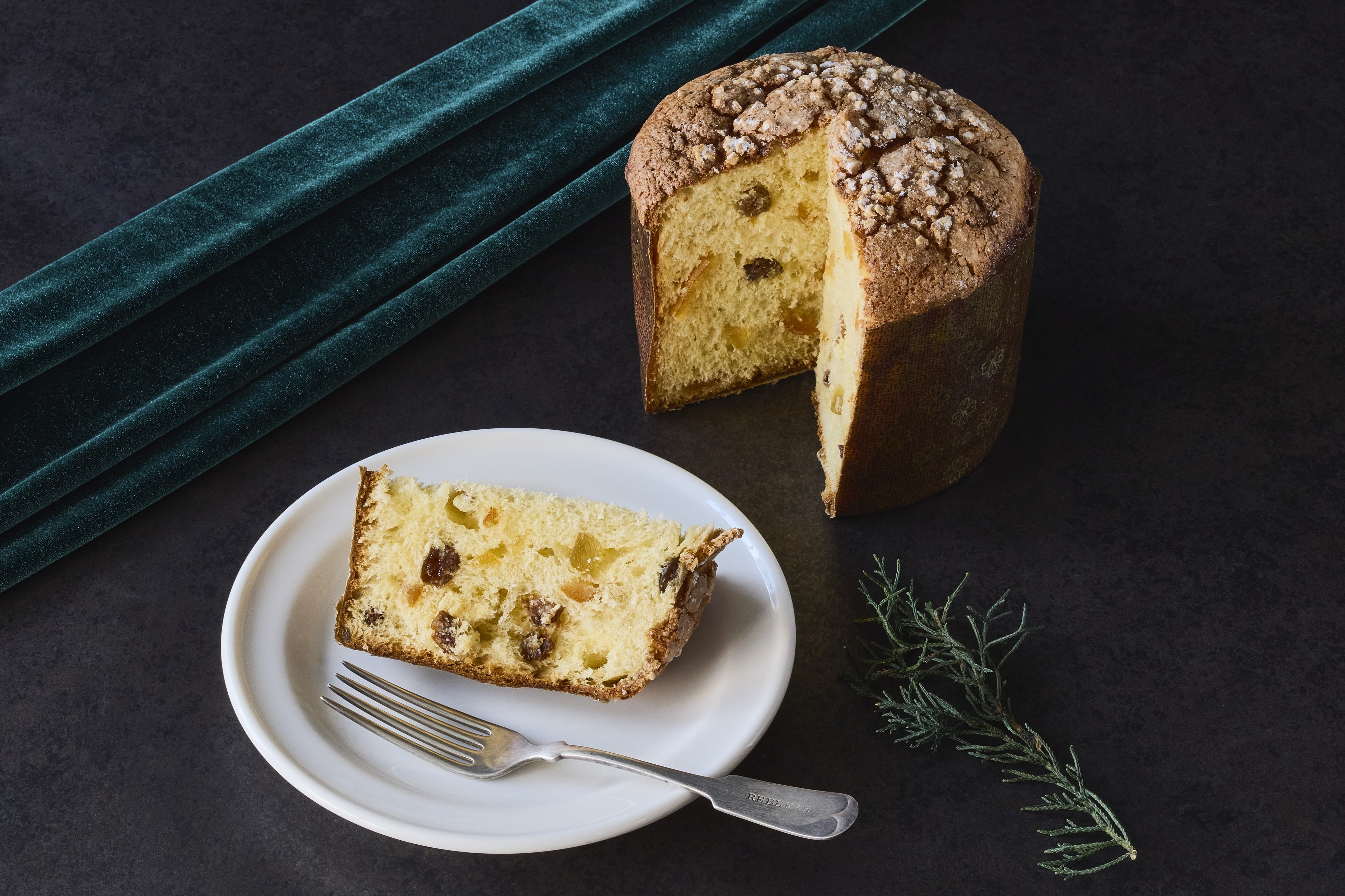 イタリア発祥の伝統的な発酵菓子で、現地ではクリスマスまでの4週間、毎日少しずつ切り分けて楽しむのが習わしのパ ネットーネ。今年はシチリア産レモン「チェドロ」を使用した特別仕様でご用意いたしました。レーズンには「金運」、オ レンジには「愛」、チェドロ(シトロン)には「健康と永遠」の願いが込められた、この時期ならではの特別な一品です。 日を追うごとに深まるドライフルーツの味わいや、芳醇な香りとともに、クリスマスまでのひと時をお楽しみください。