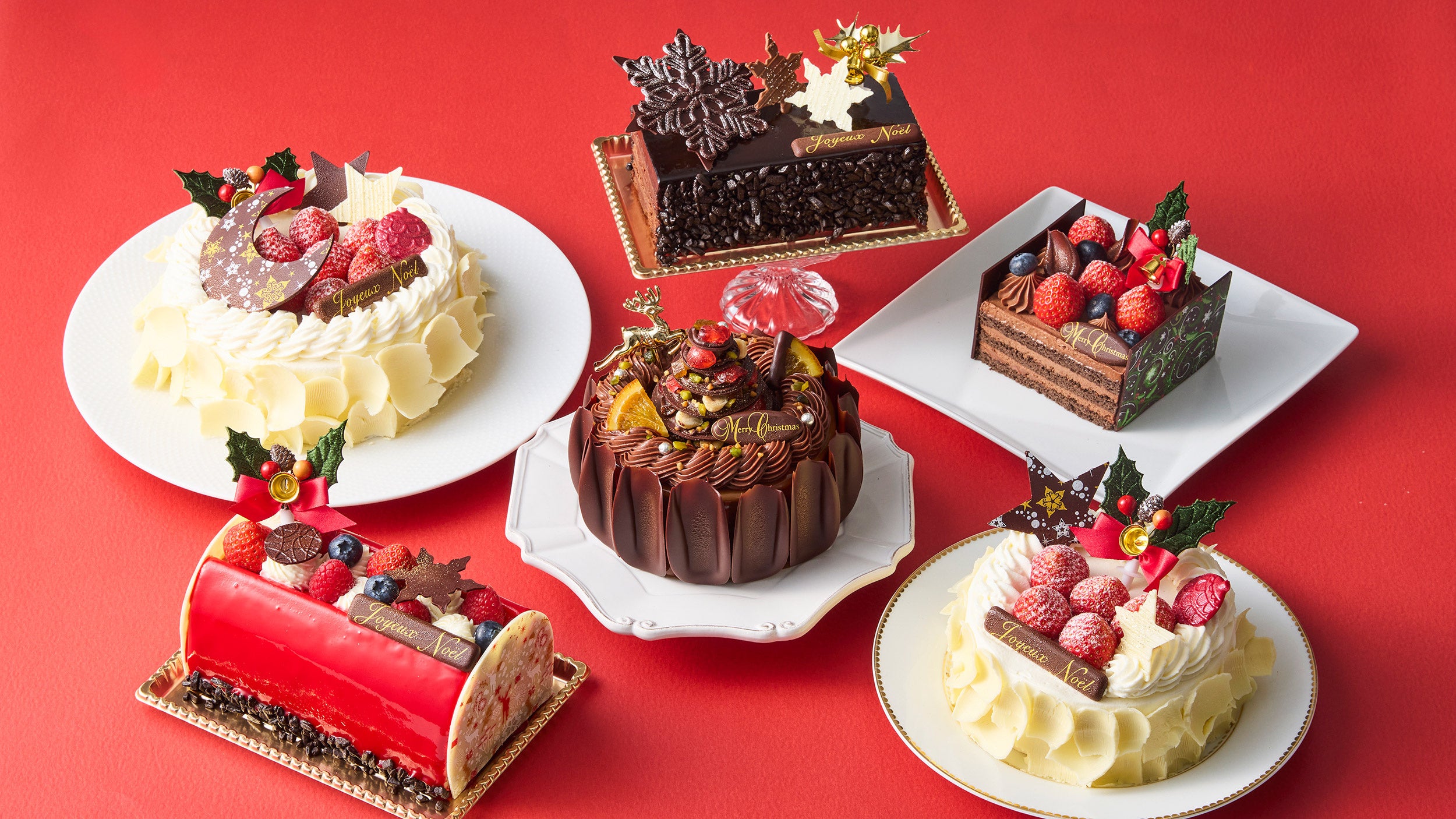 ショコラの味わいと美しさを生かしたクリスマスケーキの数々をお楽しみください。