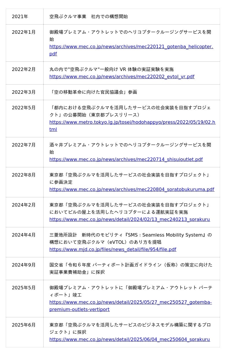 ■当社グループのこれまでの空飛ぶクルマ事業の歩み