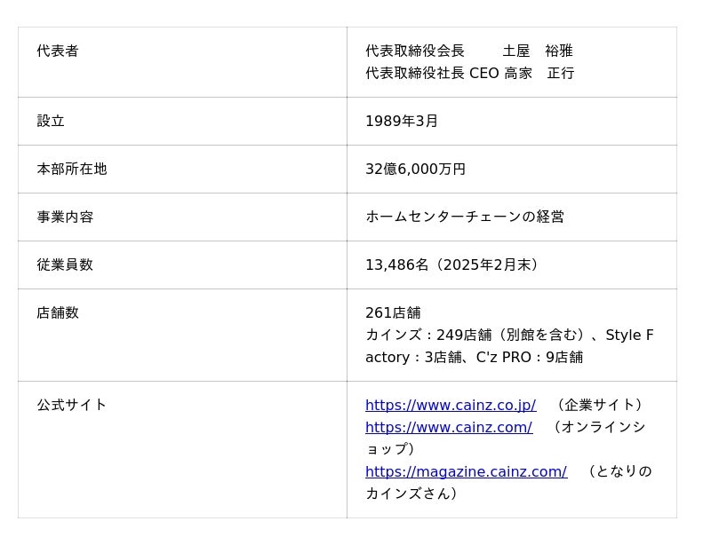 株式会社カインズは、29都道府県下に261店舗を展開するホームセンターチェーンです。