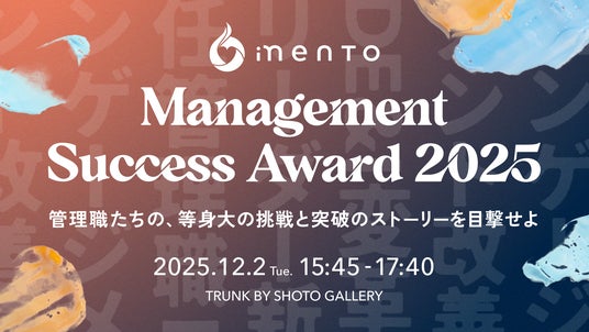 本イベントでは、新プログラムとしてマネジメントサクセスを実現した企業と管理職を表彰する「Management Success Award 2025」も予定しており、受賞企業6社・6名を発表いたします。イベント当日は、6名の管理職が社内の壁やチームの停滞にどう立ち向かったのか、実際のエピソードをもとに等身大の挑戦と突破のストーリーを5分間の中で語ります。(特設サイト:https://www.mento.jp/mss/2025)