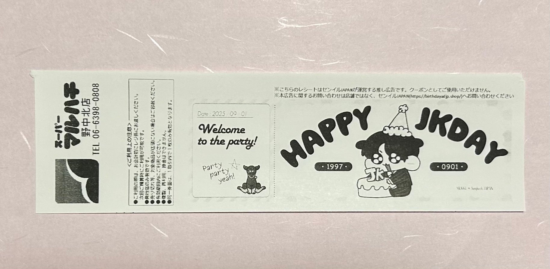 2025年9月1日~9月7日、BTS ジョングクさんのお誕生日をお祝いする「かみ推しレシート」の応援企画が実施されました。
