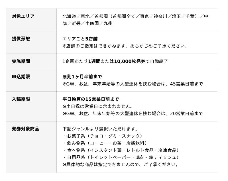 本サービスは、東芝テック株式会社(本社:東京都品川区、代表取締役社長:錦織 弘信、以下「東芝テック」)と連携し、同社が提供するクーポン発券クラウドサービス「テッククーポンデリ」の仕組みを活用することで、これまで関西地方の店舗にて展開してまいりました。