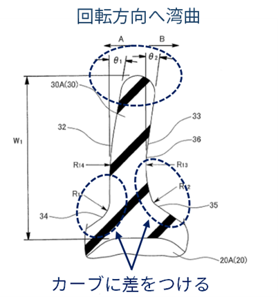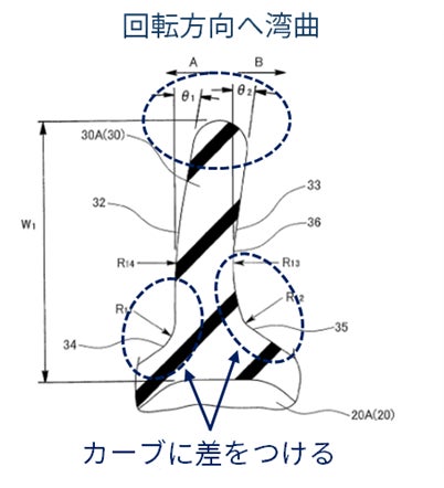 船外機の冷却水をエンジンに循環させるポンプ内に設置され、冷却水の流れをスムーズにする部品「インペラー」の形状設計に関する発明です。インペラーの羽根を回転方向に湾曲させた形状にするとともに、羽根の根元部分のカーブを回転方向側と逆側とで非対称に設計しました。これにより、羽根が滑らかに動きやすくなり、特に破損しやすい根元部分へひずみが集中することを抑制しています。本形状を用いることで、インペラーの耐久性が向上し、ポンプ性能を安定的に維持することが可能になりました。