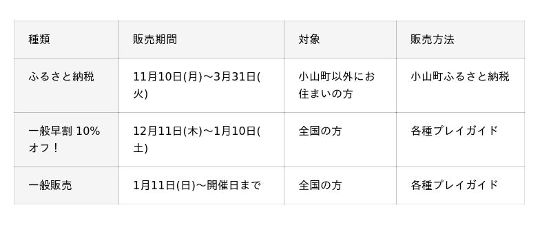 チケット発売スケジュール ~11月10日(月)より一部先行受付、12月11日(木)より全国早割販売開始!~