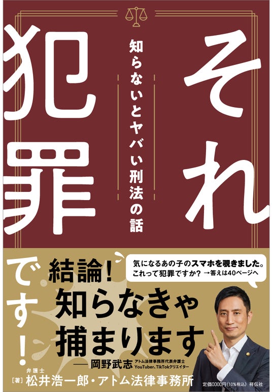 アトム法律グループ(本社:東京都千代田区、代表:岡野武志)所属の松井浩一郎弁護士が、書籍『それ犯罪です!知らないとヤバい刑法の話』(出版社:祥伝社)を2025年11月4日に出版しました。