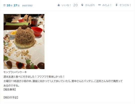 日報投稿の画像:ランチやスイーツなど“おいしい”が日報に集まり、この文化が「#橋本組社員の一押し飲食店」誕生の原点。