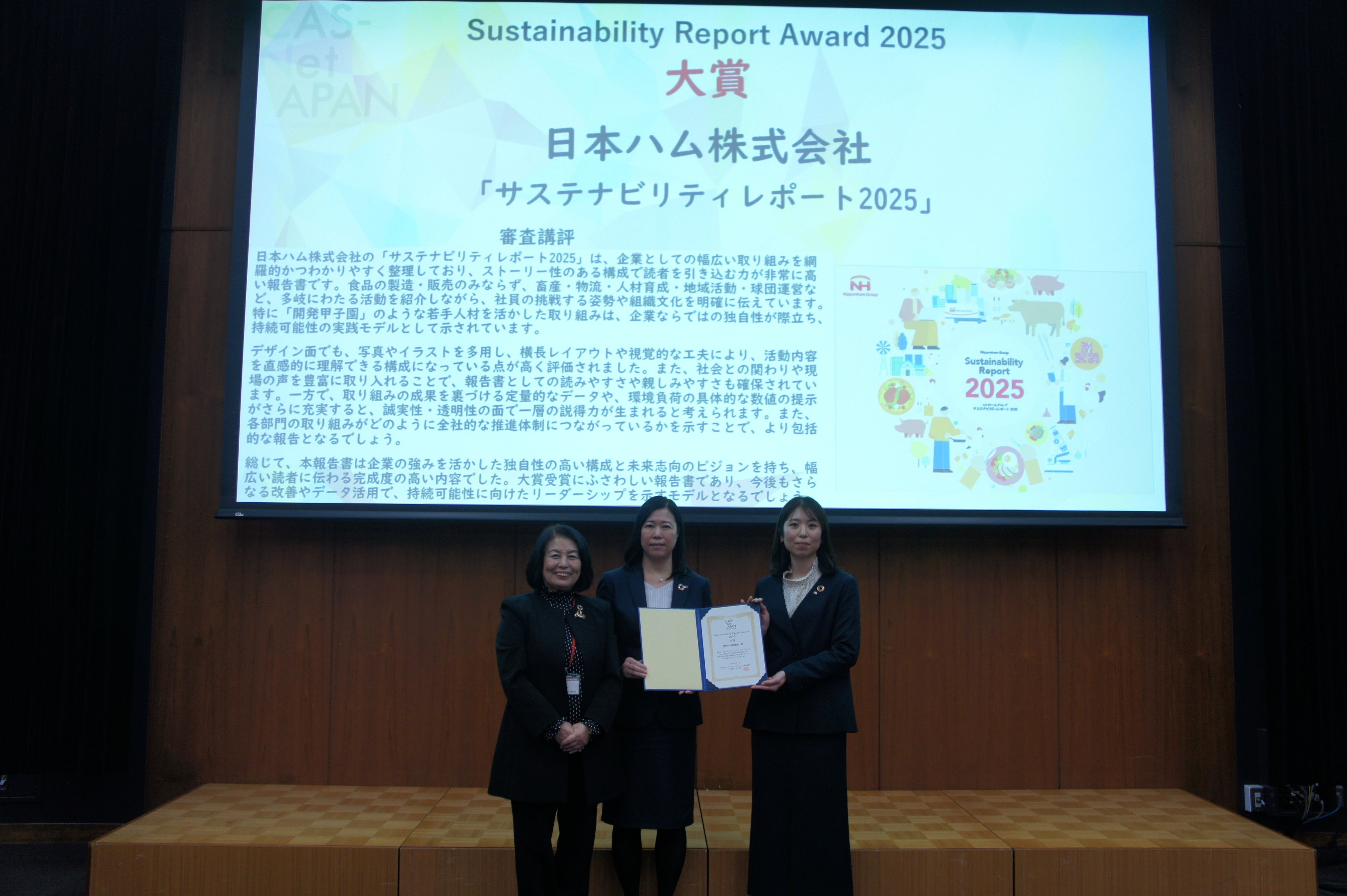 - 大賞 - 日本ハム株式会社(報告書名:「サステナビリティレポート2025」)
