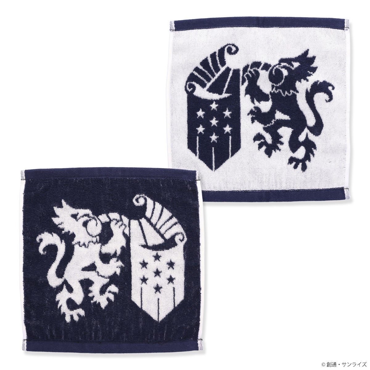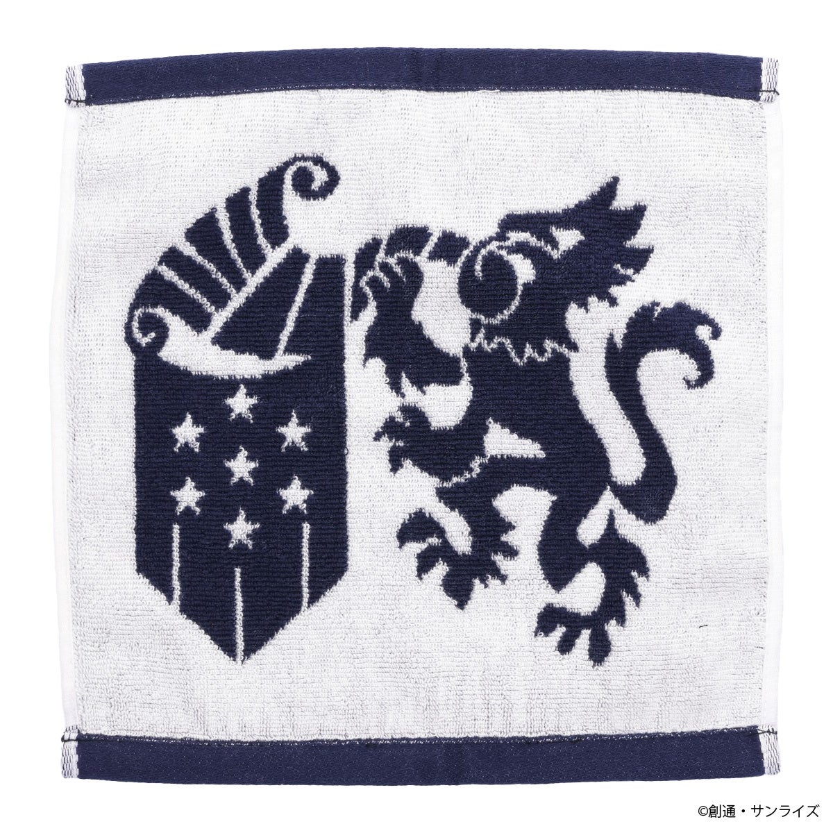 ネイビーベースにホワイトで紋章を織り上げ、上品かつクラシカルな印象に。