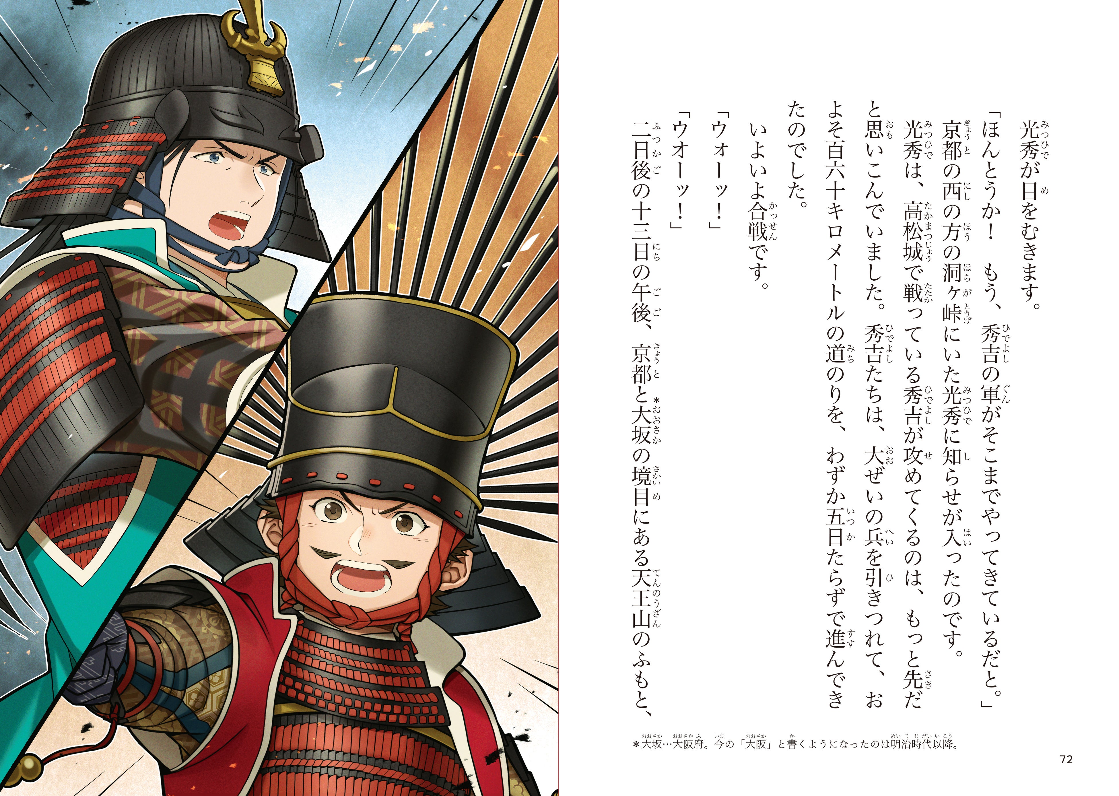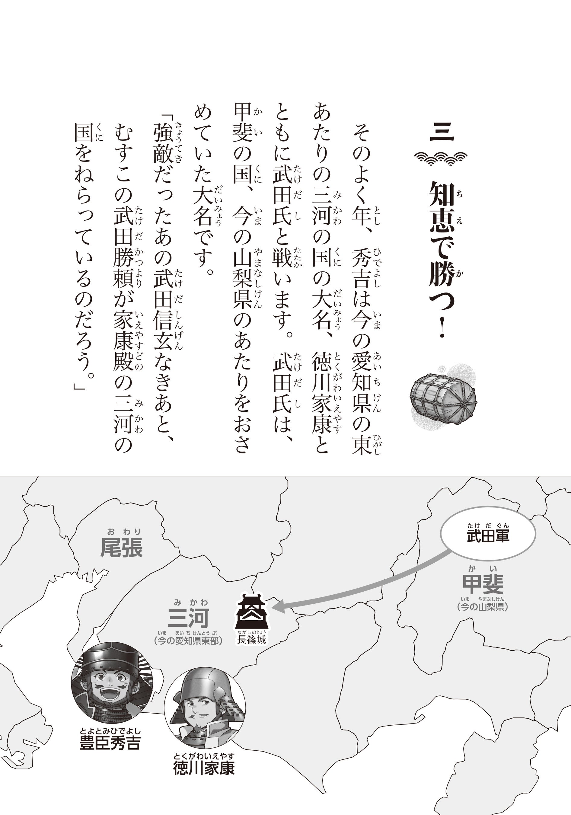 児童文学作家による読みやすい文章と、クオリティの高いイラストや地図で、秀吉の伝記が小学校低・中学年から楽しく読めます。イラストは、カラー30点以上を掲載。戦国時代の迫力ある戦闘シーンや、人に好かれやすい豊臣秀吉のキャラクターをいきいきと描いています。