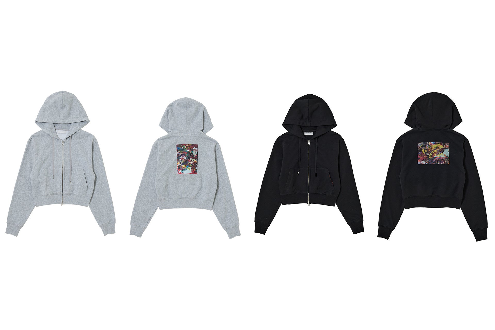 今回の共同制作では佐野氏のアートを大きくフロントやバックにデザインしたスウェット素材のアイテムや裏面に総柄でアートをあしらったブルゾンなど計9型をリリースします。