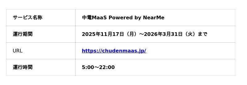 ※その他、本取り組みの詳細は中電MaaS Powered by NearMe(URL:https://chudenmaas.jp/)をご確認ください