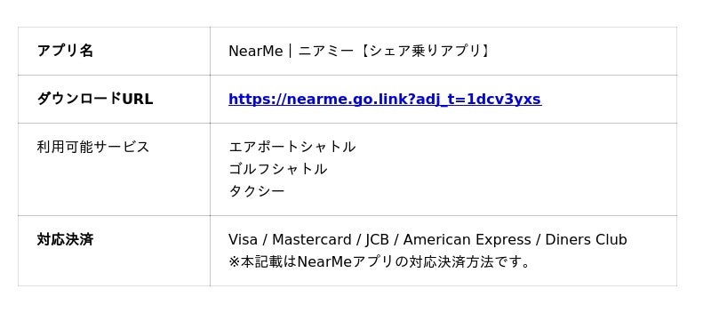 「NearMe」は、独自のAIを活用した最適なルーティングで、出発地から目的地までの移動をドアツードアで結ぶタクシーのシェアサービスです。その中でも、空港とその周辺の都市部を結ぶ空港送迎型の『エアポートシャトル』は、2019年8月のサービス開始から、 多くの方にご利用いただき、累計予約人数125万人※1を達成しました。現在は、全国16の空港※2(羽田空港、成田空港、伊丹空港、関西空港、新千歳空港、中部国際空港、福岡空港、那覇空港、旭川空港、帯広空港、青森空港、仙台空港、静岡空港、南紀白浜空港、徳島空港、北九州空港)と、空港周辺の都市部でご利用いただくことができます。対象エリアであれば、出発地となるご自宅から空港、そして空港から最終目的地まで一気通貫でつながるため、公共交通機関の乗り換えがなくなるなど、ストレスフリーな移動体験を提供することができます。また、貸切送迎サービスや、東京都と千葉県全域のゴルフ場と東京都23区内を結ぶゴルフシャトルなど、シチュエーションに応じて様々な移動のニーズに対応するための各種サービスを展開しています。