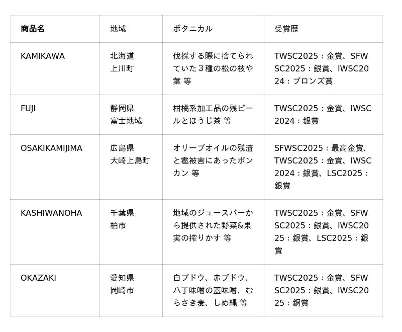 YORI は地域素材をアップサイクルしてつくる国産クラフトジンブランドで、これまでに発売した全商品が国内外の品評会で高い評価を獲得しています。