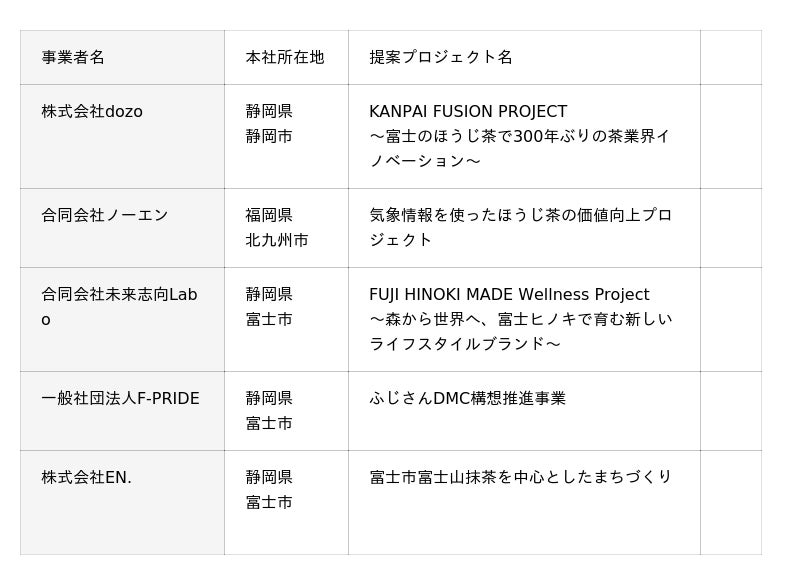 静岡県富士市(市長:小長井 義正)は、スタートアップ等向けのアクセラレーションプログラム「F Accel(エフアクセル)」において、応募総数32者の中から支援企業5者を決定しました。
