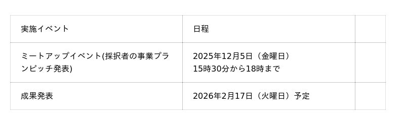 - 内容/事業説明、スタートアップ事業プランピッチ、基調講演、交流会